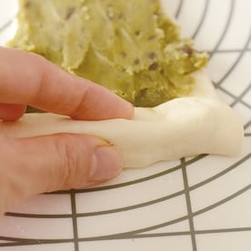 ※レシピは抹茶小豆あんたっぷりですが、ひかえめにしても可。その場合は生地のより中央にあんをぬってください。